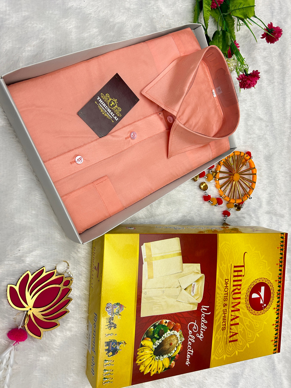Perfect for Special Occasions: Ideal for weddings, festivals, and other celebratory events, our Men's Matching Art Silk Shirt, Dhoti, and Towel Set will make you stand out in the crowd. It's a statement piece that exudes confidence and cultural richness.