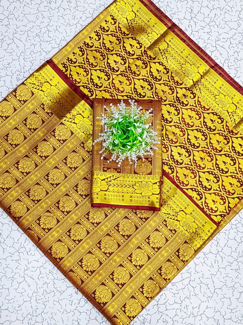 Gold, Silver And Copper Jari Woven with Matching 110 karizma
