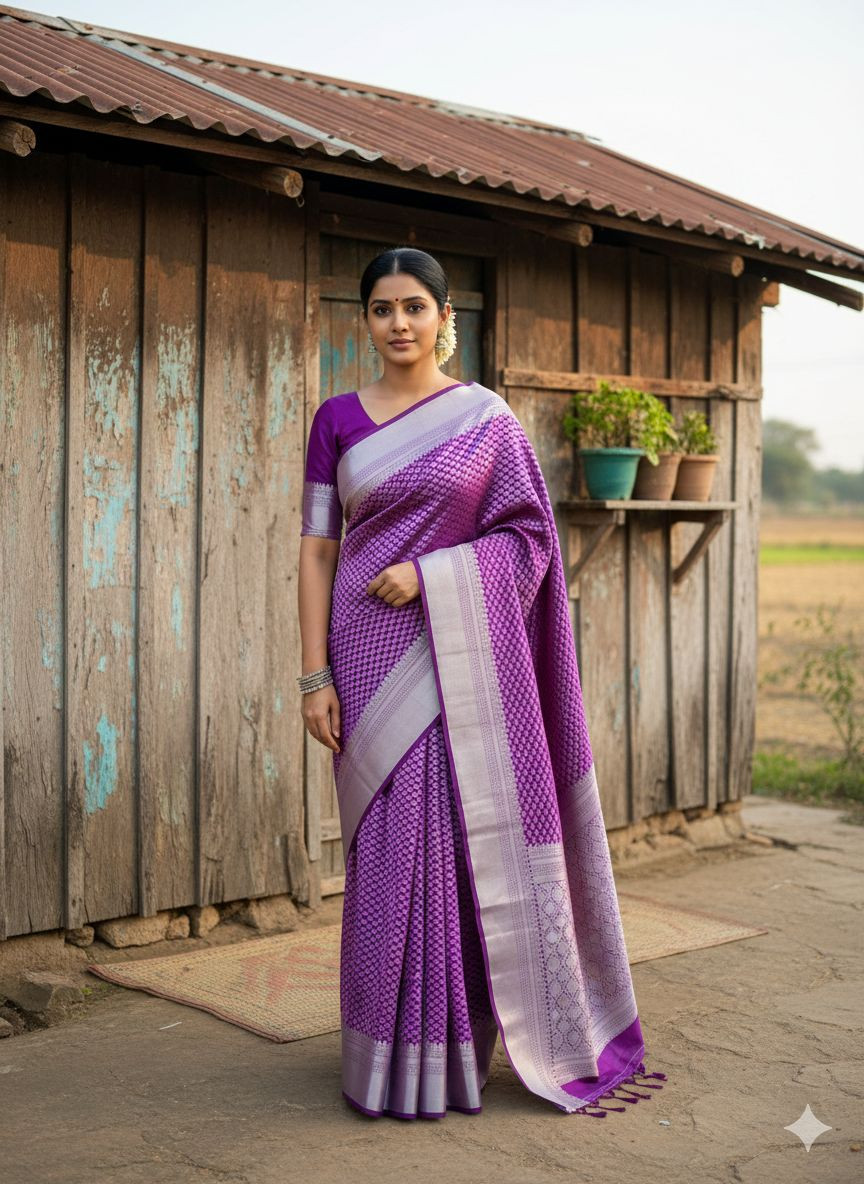 Gold, Silvar and copper jari Woven with Matching 110 karizma